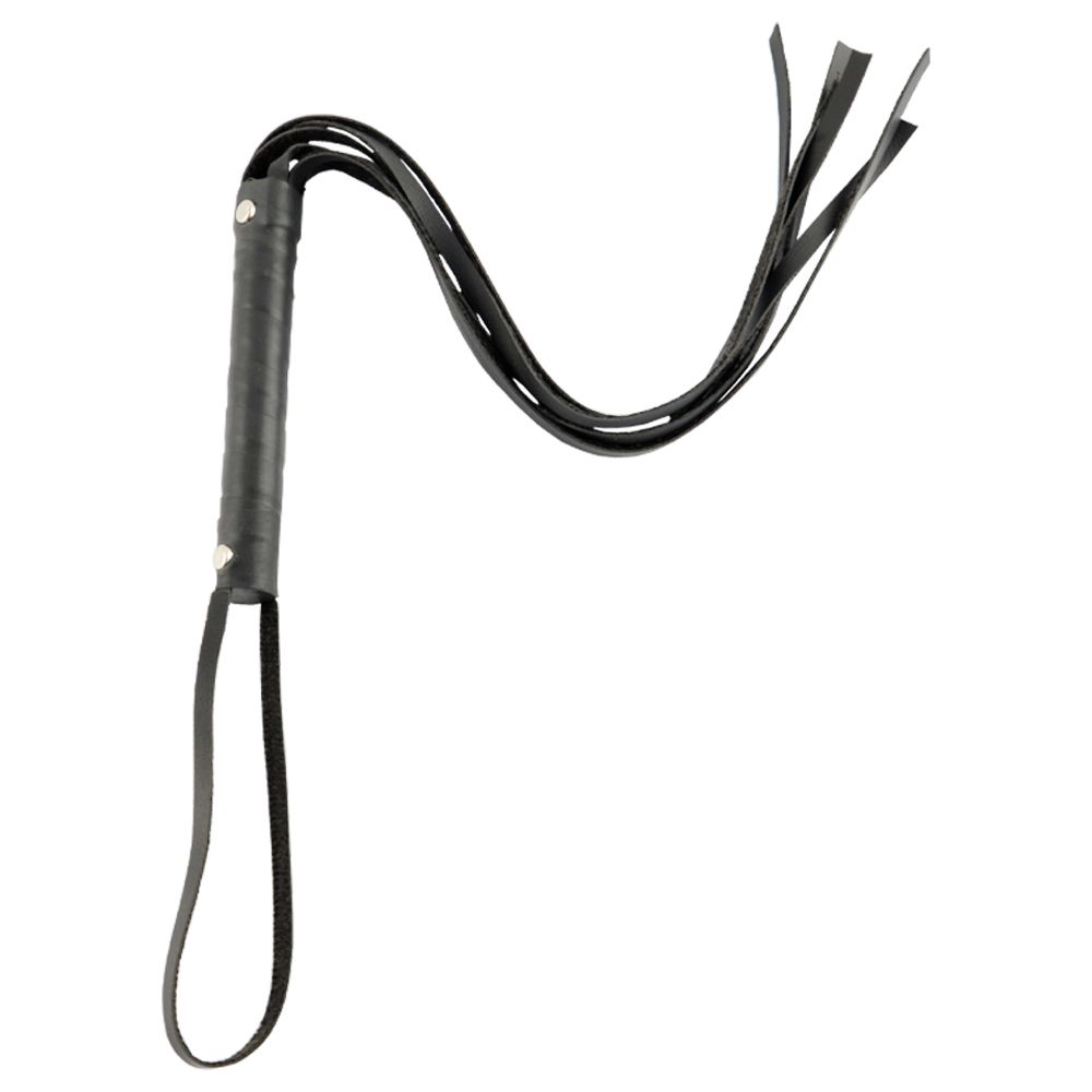 Chicote com base em madeira revestida de couro sintético liso.