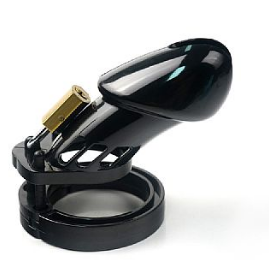 É um cinto de castidade masculino com 1 argola para escroto, e ponta vazada.